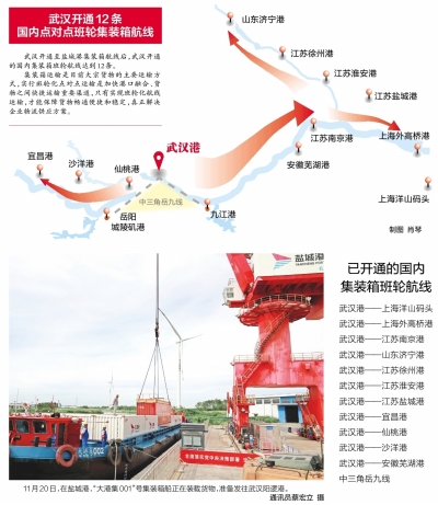 截至目前,武漢開通的國內(nèi)集裝箱班輪航線達到12條。