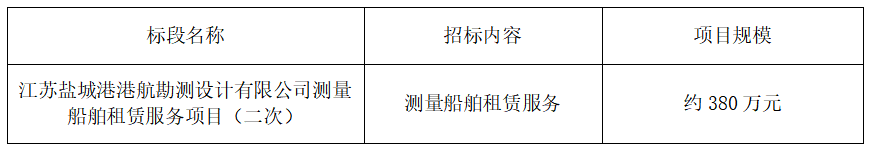 一、?江蘇鹽城港港航勘測設(shè)計有限公司?就江蘇鹽城港港航勘測設(shè)計有限公司測量船舶租賃服務(wù)項目(二次)進行公開招標,誠邀合格的投標人前來報名參加。