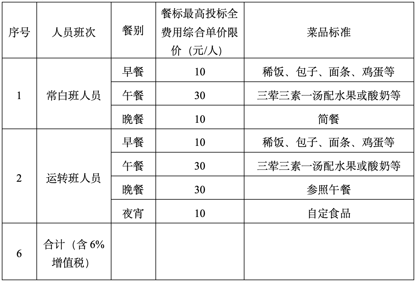 (6)招標范圍:鹽城港濱海港區常駐辦公地點分為濱海港區綜合大樓及倉儲物流園,均需設立單獨食堂,濱海港區每日就餐人數約100人,其中濱海港區綜合大樓東側一樓就餐人員約 60 人、倉儲物流園一樓、二樓就餐人數共計約40人,每個食堂均需需單獨運行。
