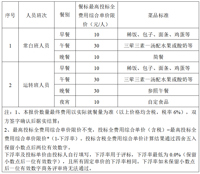 (7)服務(wù)質(zhì)量要求:按招標(biāo)人的委托服務(wù)事項和服務(wù)考核細(xì)則(考核標(biāo)準(zhǔn))進(jìn)行食堂管理服務(wù)外包服務(wù),并承諾服務(wù)質(zhì)量達(dá)到優(yōu)質(zhì)服務(wù)的管理標(biāo)準(zhǔn);