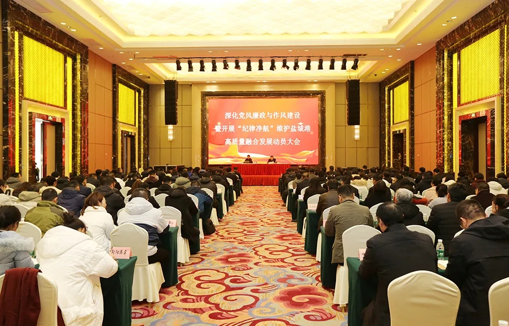 12月16日下午,鹽城港集團召開深化黨風廉政與作風建設暨開展“紀律凈航”維護鹽城港高質量融合發展動員大會。會議邀請市紀委常委、市委巡察辦主任張國鋒開展全面從嚴治黨專題講座。集團黨委書記、董事長、總經理周正雄主持會議,領導班子、機關全體及二級公司中層以上干部參加會議。