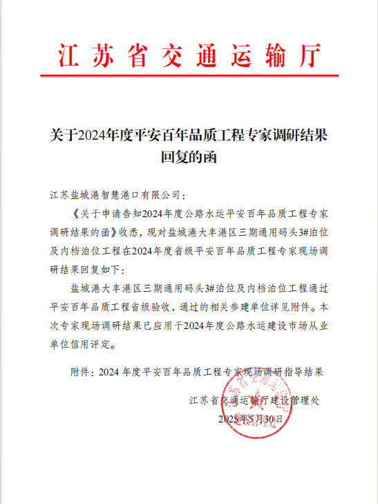 “黨旗紅,港灣綠”品牌,是公司黨委立足港口建設特色,對“三個一線”活動成效的高度凝練與升華。“黨旗紅”象征著黨對港口事業的堅強領導,是引領發展的鮮明旗幟;“港灣綠”則寓意著安全、生態、高效、可持續的現代化港口建設目標,是高質量發展的生動底色。品牌以其鮮明的政治性、突出的專業性和豐富的實踐性,創建成果轉化成效持續彰顯。項目管理更加規范高效,重大節點完成率100%;安全生產形勢持續穩定向好,連續2年未發生安全生產責任事故;工程品質屢獲行業嘉獎,工程建設公司、港灣建設集團分別榮獲大豐“五星級企業”和“四星級企業”稱號。代管的鹽城港濱海港區倉儲物流項目等4個項目獲評2024年第一批次鹽城市建筑施工標準化“示范工地”,鹽城港響水港現代產業園項目等4個項目獲評2024年度江蘇省建筑施工安全生產標準化工地。鹽城港大豐港區三期通用碼頭3#泊位及內檔泊位工程獲評2024年度省級“平安百年品質工程”。參建隊伍凝聚力戰斗力顯著提升,為公司在激烈的市場競爭中贏得了聲譽和先機。
