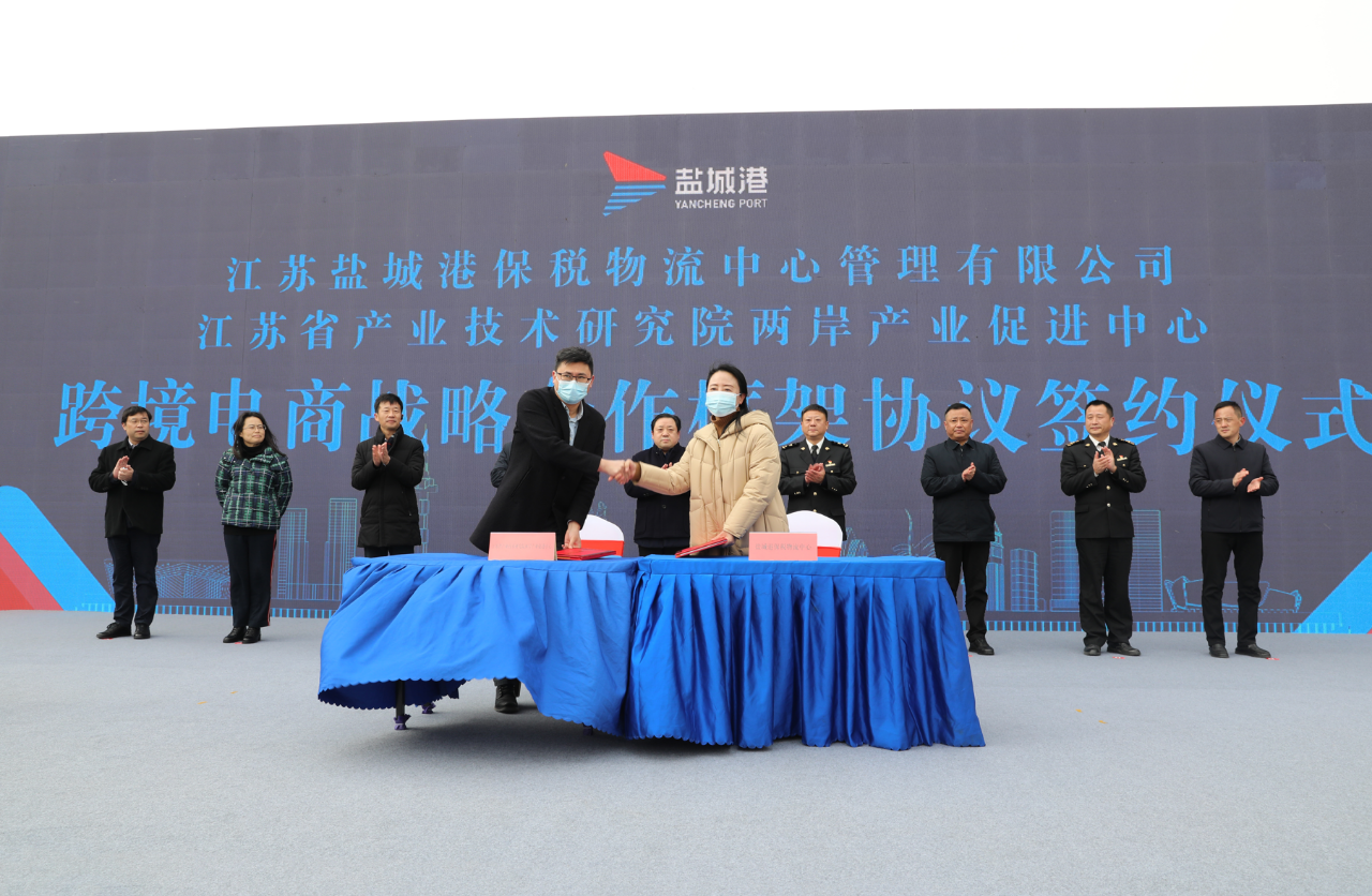 12月25日,江蘇鹽城港跨境電商“首單”啟動暨鹽城港保稅物流中心與江蘇省產業技術研究院兩岸產業促進中心跨境電商戰略協議簽約儀式,在鹽城港保稅物流中心隆重舉行。集團黨委書記、董事長、總經理周正雄,鹽城海關副關長李健,市商務局副局長喬振,市國資委副主任成友貴,集團黨委委員、紀委書記周旭東,集團總經理助理孫永峰以及大豐區相關部門負責同志出席啟動儀式并鑒簽。集團黨委委員、董事、副總經理夏立新主持活動。