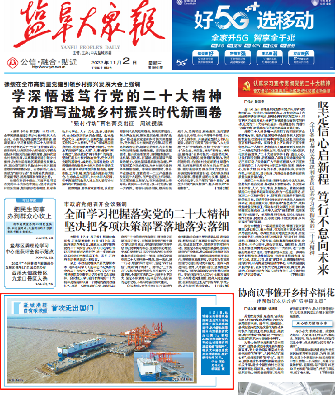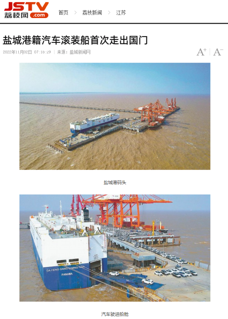 鹽城港籍汽車滾裝船首次走出國(guó)門