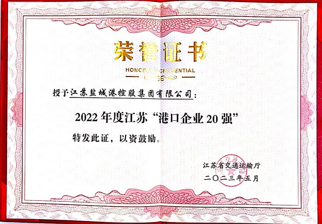 喜報! 鹽城港集團被認定為“2022年度江蘇港口企業20強”
