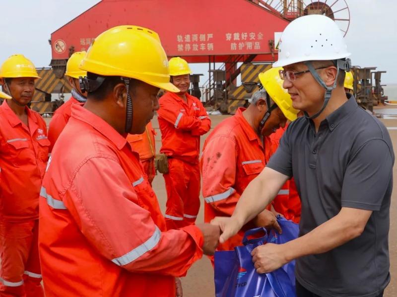 連日來,集團領導班子分別前往至碼頭、項目施工現場等地,為一線工作者送去夏季防暑消暑慰問品,并代表集團黨委向集團奮戰在高溫一線的廣大職工表示由衷的感謝和崇高的敬意。期間,集團領導班子還深入基層慰問一線海關、海事、邊檢干部員工,對他們長期以來的辛勞付出表示感謝,為他們送去了防暑物資。