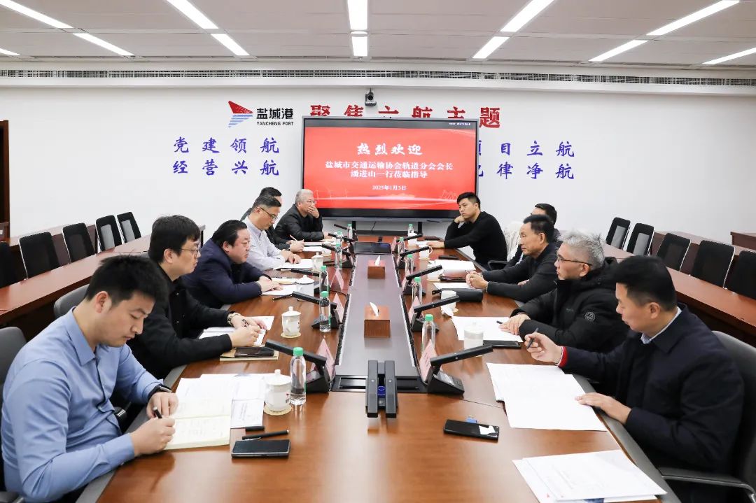 1月3日,集團黨委書記、董事長周正雄會見鹽城市交通運輸協會軌道分會會長潘進山一行,雙方就推動海鐵聯運一體化發展等工作進行交流。
