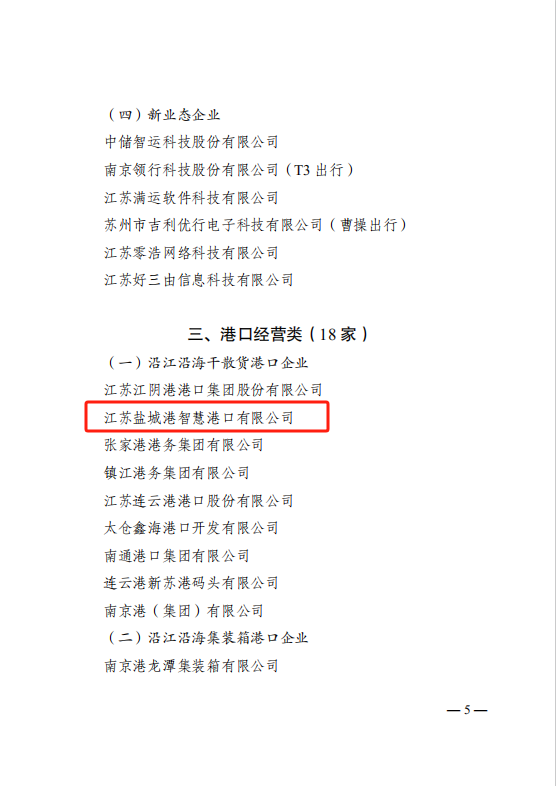 近日,江蘇省交通運(yùn)輸廳公布了“2025年江蘇交通運(yùn)輸重點(diǎn)培育企業(yè)”名單,鹽城港智慧港口公司入選,上榜港口經(jīng)營(yíng)類(lèi)沿江沿海干散貨港口企業(yè)。