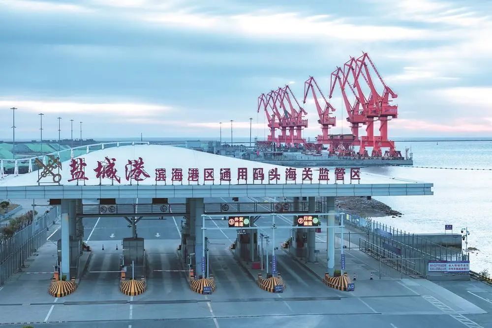 在基礎設施建設上,鹽城港先后完成灌河口5萬噸級航道、響水港區重件碼頭、射陽港區3.5萬噸級航道、大豐港區綜合倉儲物流、濱海港區物流園堆場等一批重大項目建設,實現“一港四區”萬噸級以上航道通航全覆蓋,累計完成投資超200億元。大豐港區單船裝卸屢創紀錄,響水、濱海、射陽港區生產運營連年倍增,跨境電商蓬勃發展,汽車進出港量取得突破,累計完成起亞、奇瑞等品牌汽車滾裝作業量超6萬輛。2024年全港貨物吞吐量突破1.6億噸,提前一年實現“十四五”翻兩番的目標。