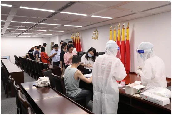 為進一步織密織牢集團聯(lián)防聯(lián)控防疫網(wǎng)絡(luò),切實保障全體員工的健康安全。在100%實現(xiàn)新冠疫苗“應(yīng)種盡種”前提下,集團積極與市疾控中心協(xié)調(diào)溝通,7月21日上午,邀請德賽堡醫(yī)院核酸檢測醫(yī)護團隊來集團為全體職工進行核酸檢測工作。集團上下統(tǒng)籌推進疫情防控和生產(chǎn)經(jīng)營,提前安排部署,根據(jù)“到點、到時、到人”的要求,廣大干部職工積極配合,核算檢測現(xiàn)場秩序井然有序。