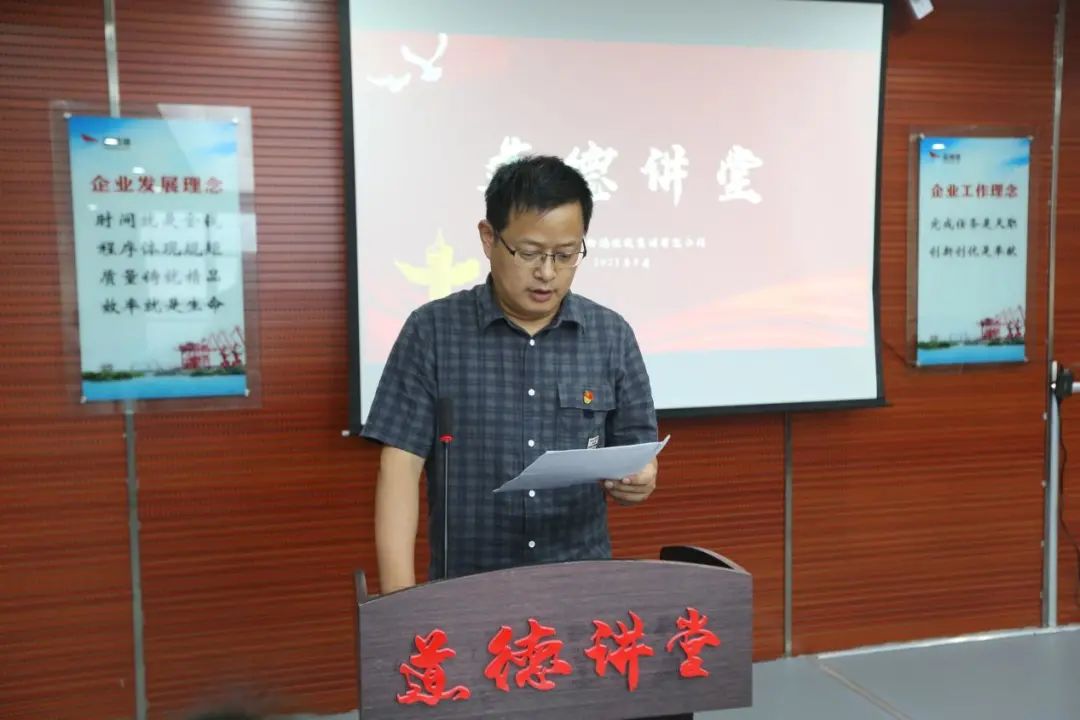 8月27日,大豐港區(qū)開展道德講堂活動,大豐港集團黨委委員、董事陸峰主持,集團工會、黨群工作部相關人員,各公司工會副主席、優(yōu)秀職工代表,各公司子女參加高考的職工代表參加。
