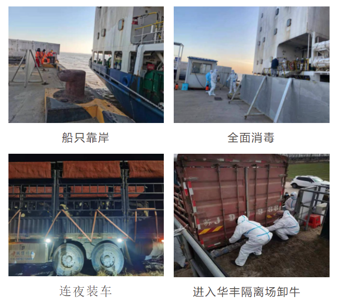 船舶靠岸后,工作人員積極搶抓時(shí)間,從27日下午17時(shí)至28日下午14時(shí),始終堅(jiān)守崗位連續(xù)工作近24小時(shí),協(xié)同第三方認(rèn)真組織開展防疫、消毒措施,在最短時(shí)間內(nèi)完成了卸牛、運(yùn)輸及種牛進(jìn)場工作,為今年的種牛隔離業(yè)務(wù)畫上了圓滿的句號(hào)。