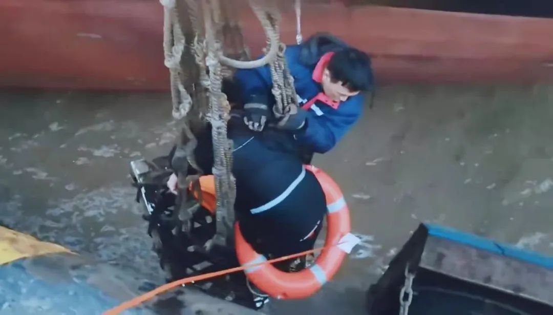 12月29日下午5點15分,刺骨的寒風掠過海面,裝載石子的南鑫7號貨輪船員在船邊行走,不慎失足掉入海中,冰冷的海水隨時可能將落水船員吞噬,情況十分危急。