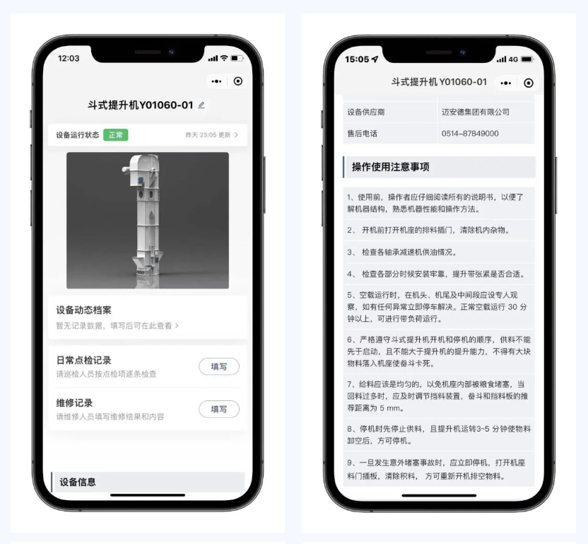 巡檢及維保人員只需通過微信掃描設(shè)備上的二維碼,即可對照小程序檢查條目逐條確認(rèn)并記錄工作內(nèi)容,快速記錄設(shè)備狀態(tài)、檢修設(shè)備,也可以根據(jù)小程序中顯示的設(shè)備常見故障以及排除方法,第一時間判斷設(shè)備問題并及時通知機務(wù)進(jìn)行修復(fù),及時消除存在隱患。