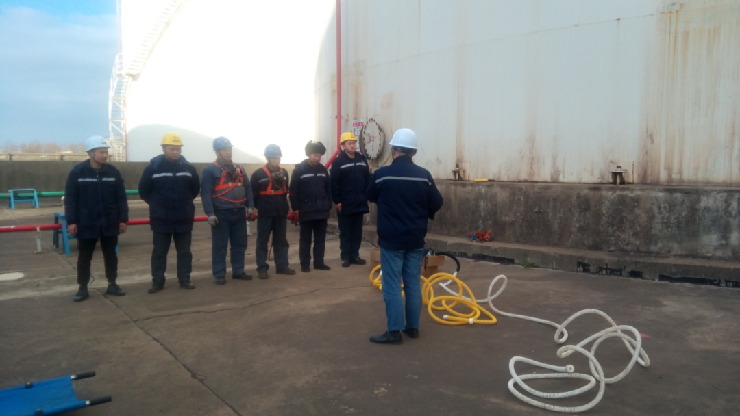 本次演練主要通過(guò)模擬作業(yè)人員進(jìn)入儲(chǔ)罐作業(yè)時(shí),未按公司操作規(guī)程進(jìn)行,在發(fā)生的受限空間事故時(shí),如何通過(guò)正確使用應(yīng)急救援物資在現(xiàn)場(chǎng)進(jìn)行救援。