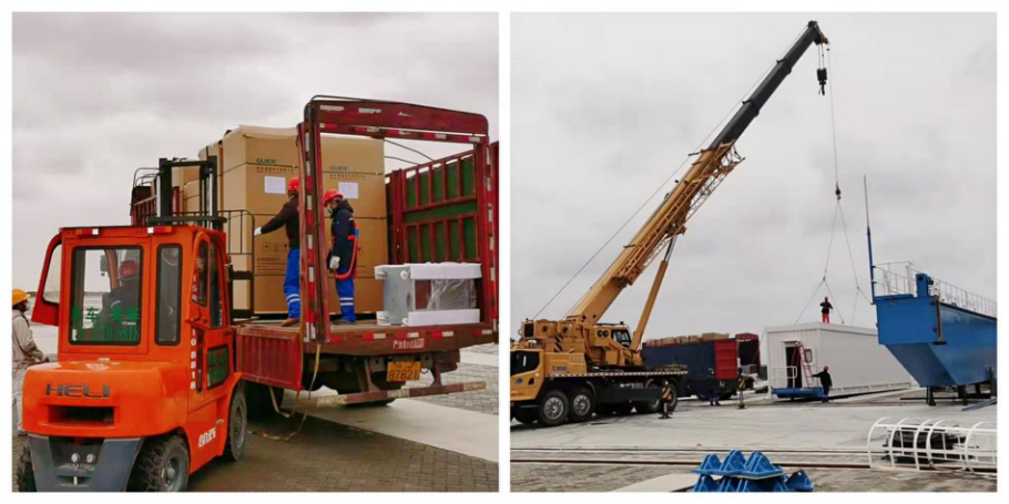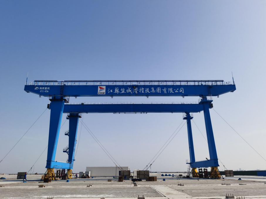 截至目前,重箱堆場、空箱堆場、熏蒸場地、港內(nèi)堆場等基層、面層已全部完成,道路與堆場工程量已完成約98%,邊檢樓沉樁完成144根,進(jìn)、出港閘口基礎(chǔ)與主體柱已完成4根,變電所、進(jìn)出港閘口、查驗(yàn)平臺及監(jiān)管倉庫、維修保養(yǎng)車間、生活污水處理站等附屬設(shè)施土建方面工程量已完成約70%,1臺GJQ型41t-40m軌道式集裝箱門式起重機(jī)主體已吊裝完畢,即將進(jìn)入調(diào)試階段。