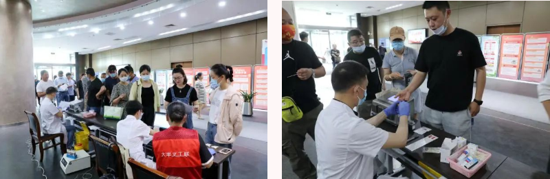 獻血現場,廣大干部職工自覺排好隊伍,依次填寫表格、測量血壓、抽血化驗,進行血液初篩,做好獻血前的準備工作,經過嚴格的檢驗合格后上車采血,整個過程在醫護工作者的指導下井然有序。