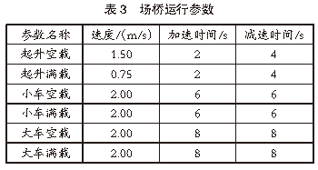 堆場仿真參數:2.1 堆場布局參數港口裝卸作業區布置2個10萬噸級泊位,每個泊位配備3臺岸橋,總計6臺岸橋,編號分別為Crane 1、Crane 2、Crane 3、Crane 4、Crane 5、Crane 6。港口堆場作業區規劃有4個箱區,編號分別為E01、E02、E03、E04。在堆場布置方面,E01箱區為近海側箱區,E04箱區為近陸側箱區,E01、E02箱區為出口箱區,E03、E04箱區為進口箱區。在港口堆場作業區規劃中,將E01箱區設置為9列5層箱區,E02、E03、E04箱區設置為12排5層箱區,每個箱區配備有2臺場橋協同作業,總計8臺場橋,編號分別為A01、A02、A03、A04、A05、A06、A07、A08。2.2 堆場設備參數港口堆場作業設備主要包括場橋、岸橋、集卡等,上述設備的運行參數即為堆場仿真系統的輸入參數。根據實際集裝箱堆場作業數據,對作業設備進行參數設置。岸橋運行參數見表1,集卡運行參數見表2,場橋運行參數見表3。