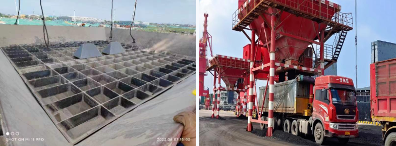 由于煤炭粘性較強,前期料斗設計存在缺陷,時常發生堵塞料斗口的問題,港務公司技術條線針對堵料問題現場研究,綜合分析出缺少分料、格柵位置偏低、料斗振動電機部位設置不科學等原因,并積極聯系廠家對料斗進行改造,大幅提升了作業效率,煤炭裝車效率從原不到650噸/小時提升到目前超過1100噸/小時。