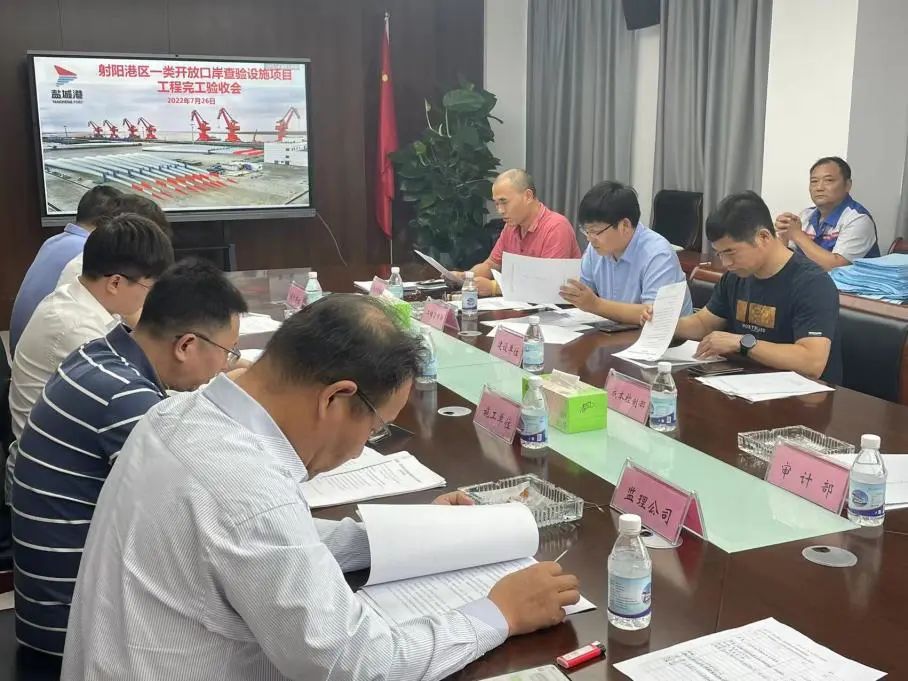 7月26日,鹽城港射陽港區(qū)一類開放口岸查驗設(shè)施項目順利通過完工驗收,項目管理公司,集團(tuán)工程管理部、審計部、成本控制部,以及建設(shè)、勘察、設(shè)計、監(jiān)理、檢測、施工、跟蹤審計單位等相關(guān)負(fù)責(zé)人參加本次驗收會。