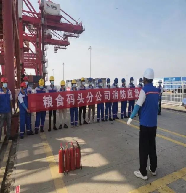 高溫熱浪持續(xù),碼頭一線職工頭頂烈日、揮汗如雨、堅守崗位,經(jīng)受著高溫的“烤”驗,同時,高溫也使得碼頭作業(yè)現(xiàn)場的火災風險驟增,消防安全也面臨著更大壓力。為確?!叭苋仨殹卑踩a(chǎn)工作落實落地,防患于未燃,近日,港口公司糧食碼頭分公司舉行了消防演練。