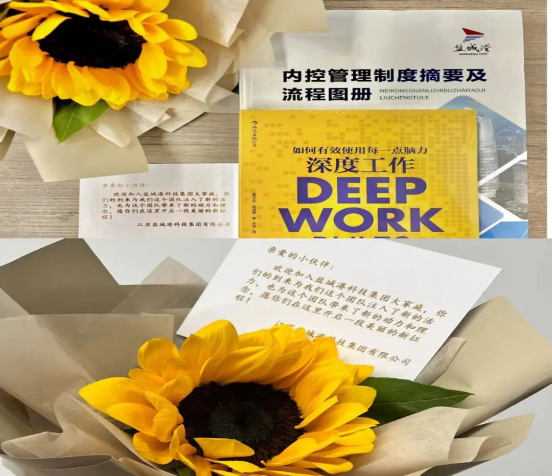 活動中,科技集團還為新員工準(zhǔn)備了集團制度匯編、管理類書籍及歡迎賀卡。