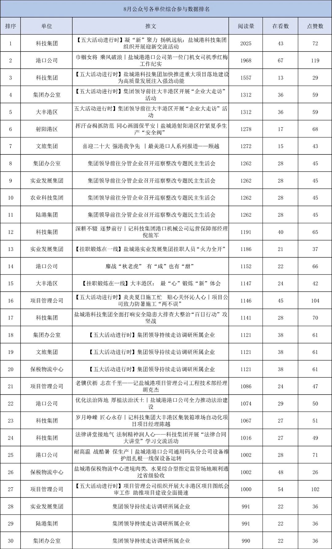 鹽城港微信榜單|8月份榜單新鮮出爐,速看!