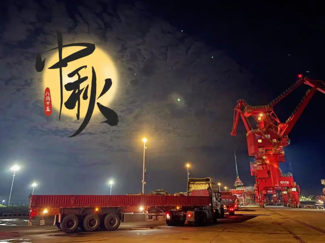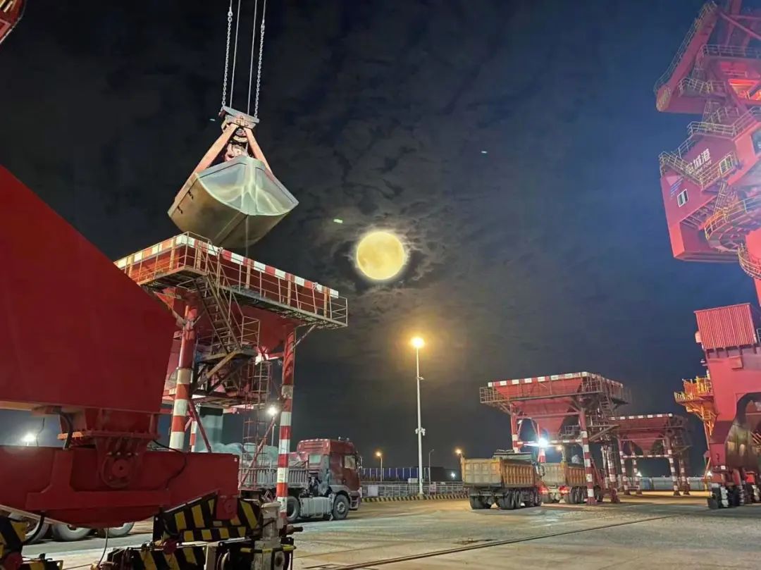 碼頭月下影成雙,守港擔(dān)責(zé)一如往