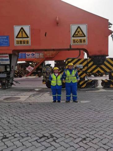 薛干雷和高娟夫妻倆都是濱海港區6#門機同崗不同班次的操作員,兩人分別于2014年、2019年入職于濱海港碼頭一線。曾在碼頭連續工作4年的高娟,門機操作業務嫻熟有致,保暢經驗豐富,是大家遇到業務難題時第一時間想起的“師姐”。而性格溫和的薛干雷在工作上細心嚴謹,處理操作難題穩妥有序,是班組現場保暢工作中的得力助手。他們所轄的門機位于1#碼頭最西邊,是歷年來抓挖高效的關鍵站點。為全力保障濱海港區碼頭吞吐量的有效提升和安全暢通,薛干雷和高娟每年主動放棄節假日休息時間高達20余個工作日,全身心投入到忙碌的生產保暢工作中去,用愛和堅守共同書寫最美的“敬業福”。