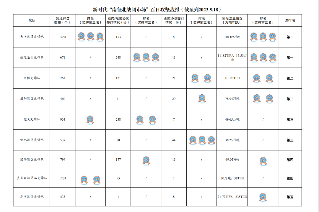 活動開展以來,累計拜訪客戶數量9907家,簽訂意向/框架協議數量1464份,簽訂正式協議173份,實際走量22000TEU、449.21萬噸。