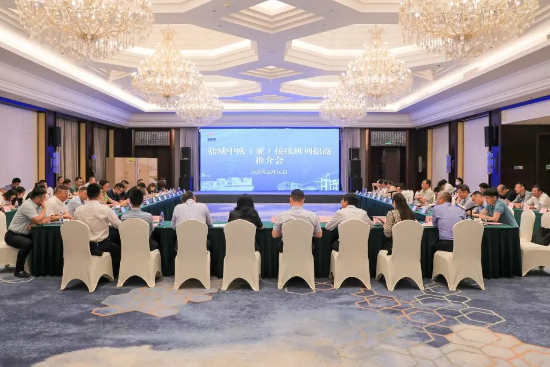 在鹽城港集團成立三周年之際,6月16日,中歐(亞)接續班列“鹽城號”正式開行。市委副書記、統戰部部長羊維達出席活動并宣布中歐(亞)接續班列“鹽城號”首發開通。市委常委、副市長吳本輝主持活動。省國鐵集團黨委副書記、總經理丁建奇,省鐵路辦副主任馮兆祥出席并分別致辭。集團黨委書記、董事長周正雄參加活動并介紹相關情況,集團黨委副書記、董事、總經理陸帥代表集團與7家企業簽訂中歐班列合作協議。
