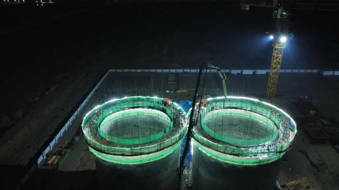 近日,濱海港區(qū)倉儲物流項目首組淺圓倉倉壁順利封頂。