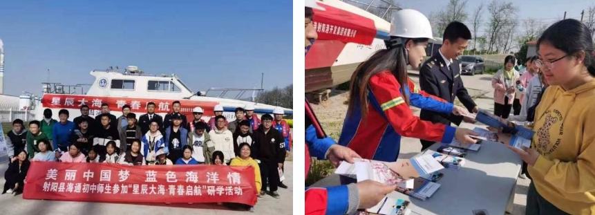 為進一步強化港口文化建設(shè),拓展港口文化進校園、進社區(qū),鹽城港射陽港區(qū)聯(lián)動連云港航標(biāo)處、鹽城海事局、海通鎮(zhèn)人民政府開展“星辰大海,青春啟航”水上安全知識進校園暨“港口開放日”活動。通過對港口碼頭設(shè)備設(shè)施、生產(chǎn)運營、航道通航等知識的解讀,向參加活動的30余名青少年學(xué)子們傳遞“沐光向海”的重要意義。