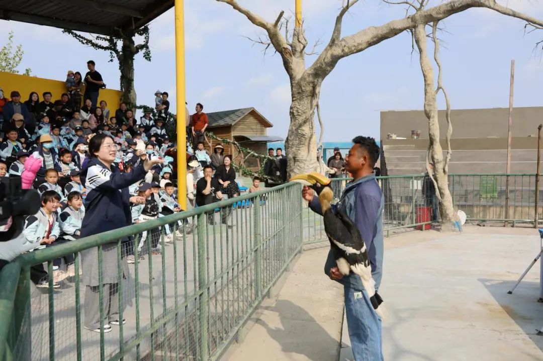 同學們與鳥兒進行親密互動,在工作人員的指導下給鳥兒們喂食,引得孩子們陣陣歡笑,人與自然和諧共生的畫面充分彰顯。