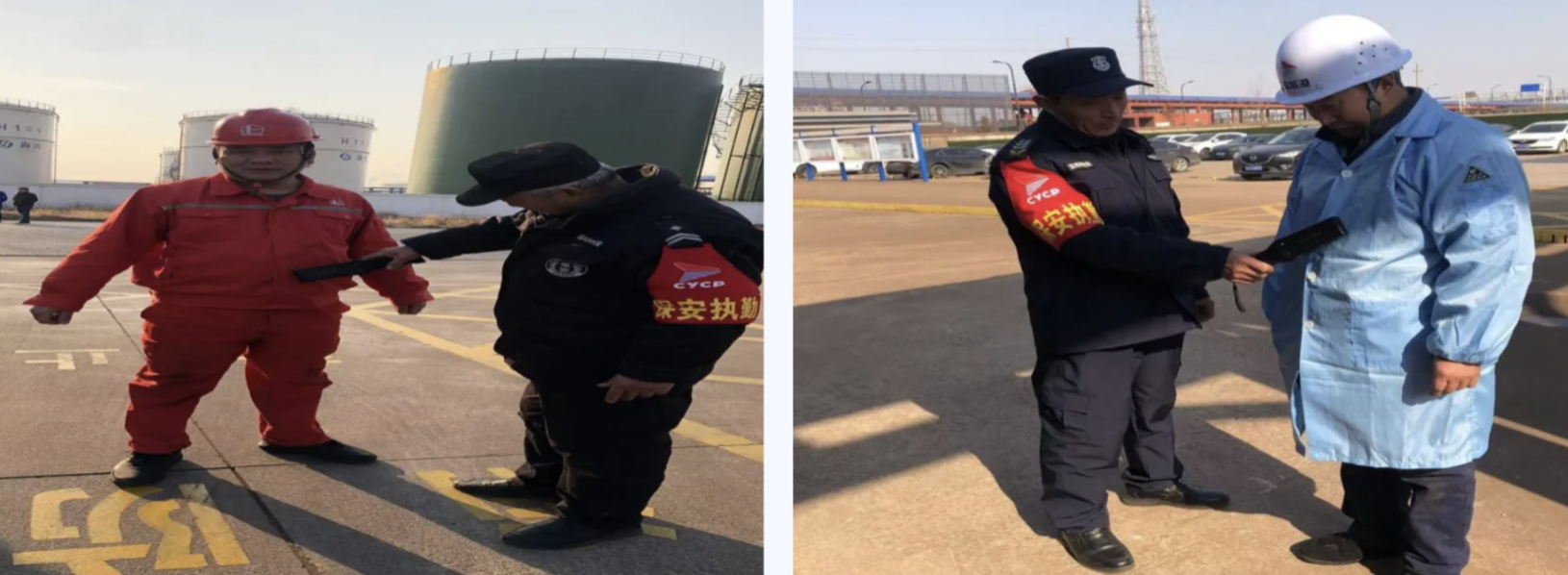 港儲石化公司開展進場手機安全管理專項整治行動,門衛通過“金屬探測儀”對進場人員是否攜帶手機進行隨機檢查,排查重點作業、重點部位、重點人員、重點時段的風險隱患,嚴格落實現場安全監督和防護措施。