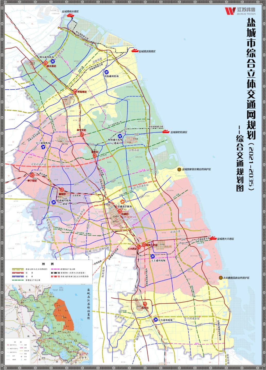 為貫徹落實(shí)加快建設(shè)交通強(qiáng)國(guó)和交通運(yùn)輸現(xiàn)代化示范區(qū)戰(zhàn)略部署,推動(dòng)鹽城交通高質(zhì)量可持續(xù)發(fā)展,日前,《鹽城市綜合立體交通網(wǎng)規(guī)劃(2021—2035年)》(以下簡(jiǎn)稱《規(guī)劃》)發(fā)布,這是全省率先以市級(jí)政府名義出臺(tái)實(shí)施的交通網(wǎng)規(guī)劃。