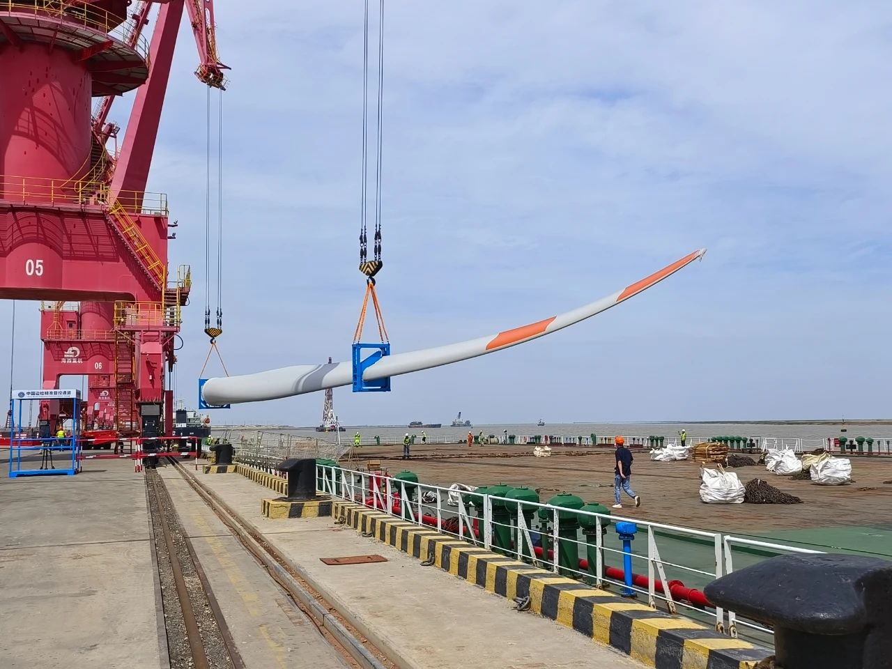 針對此次業(yè)務(wù),射陽港區(qū)成立工作專班,以“全過程”“一站式”服務(wù)為抓手,與業(yè)務(wù)單位落實具體合作細節(jié)。一方面多次邀請物流單位至現(xiàn)場協(xié)調(diào)溝通葉片進場、落場、葉片清洗、短駁、裝卸指揮、船舶進出港等流程環(huán)節(jié),并以沙盤演練的方式,提前部署解決各環(huán)節(jié)存在堵點;另一方面前往聯(lián)檢單位對接業(yè)務(wù)動態(tài),在為客戶提供了“一站式”通關(guān)服務(wù)的同時,大大降低企業(yè)運輸成本和時間,真正從客戶視角出發(fā),讓客戶體驗風電裝備進出口港的“港口+”全流程“定制化服務(wù)”。