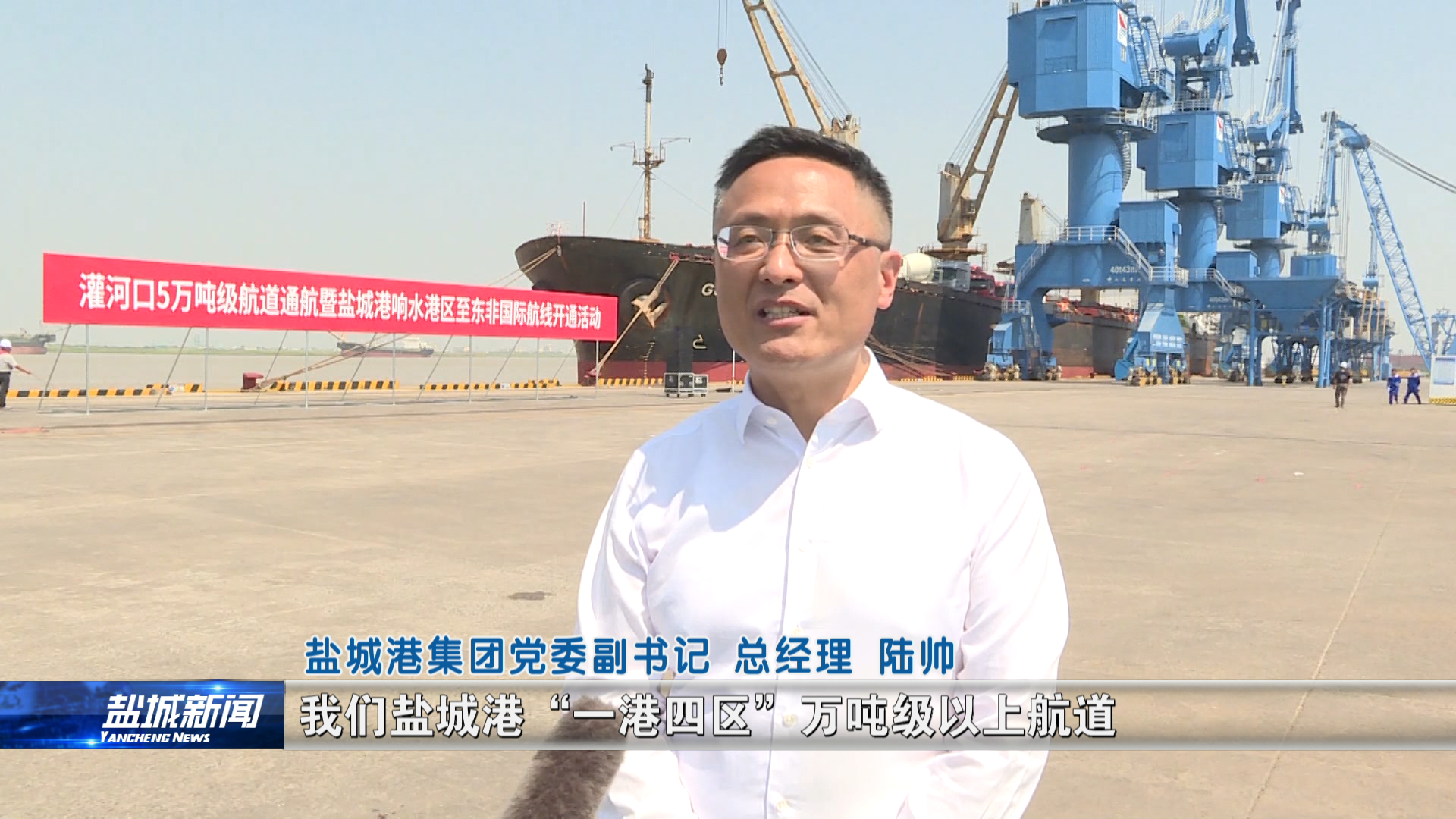 6月13日上午,隨著一陣鳴笛聲,停泊在響水港區5號碼頭的5萬噸級金波輪整裝待發,即將開始它的東非之旅。這標志著灌河口5萬噸級航道暨鹽城港響水港區至東非國際航線正式通航,為鹽城走向世界海上大通道描上厚重的一筆。