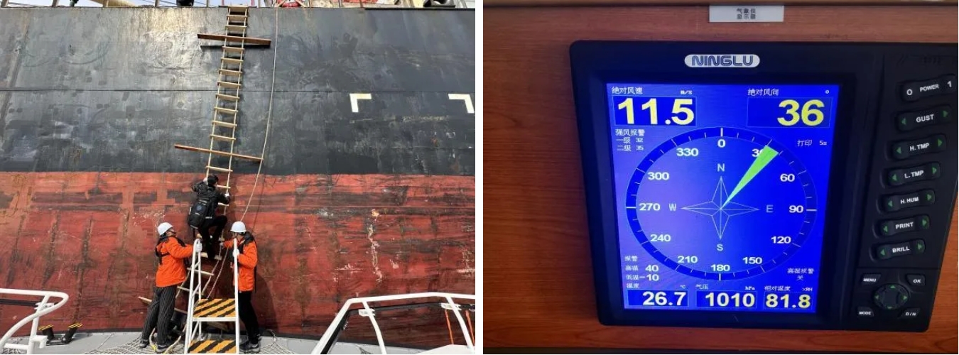 在陣風7級的影響下,引航員艱難地攀爬引航梯登上了引航船舶,通過對現場水文天氣環境的觀察,結合自身經驗,抓住陣風窗口期,開啟船用雷達,實時監測航道有無礙航物及過往船只,并要求船方備妥雙錨和主機,以應對潛在安全風險,引航員不斷在船舷和駕駛室內來回跑動觀察,加強瞭望,及時利用高頻與海事部門、拖輪以及碼頭人員進行溝通聯系,安全地完成了本次引航靠泊任務。