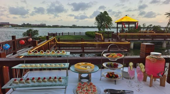 金秋戶外賞月活動(dòng)現(xiàn)場(chǎng),酒店精心布置了日月湖畔中庭區(qū)域,如嫦娥奔月的壁畫(huà)、玉兔造型的擺件等,綢緞臺(tái)面上擺滿了各種精致的月餅、新鮮的水果和香醇的茶點(diǎn),周圍點(diǎn)綴著璀璨的燈光,處處洋溢著濃厚的節(jié)日氛圍。現(xiàn)場(chǎng)的小游戲環(huán)節(jié),顧客們踴躍參加,更是將整個(gè)活動(dòng)氛圍推向了高潮。