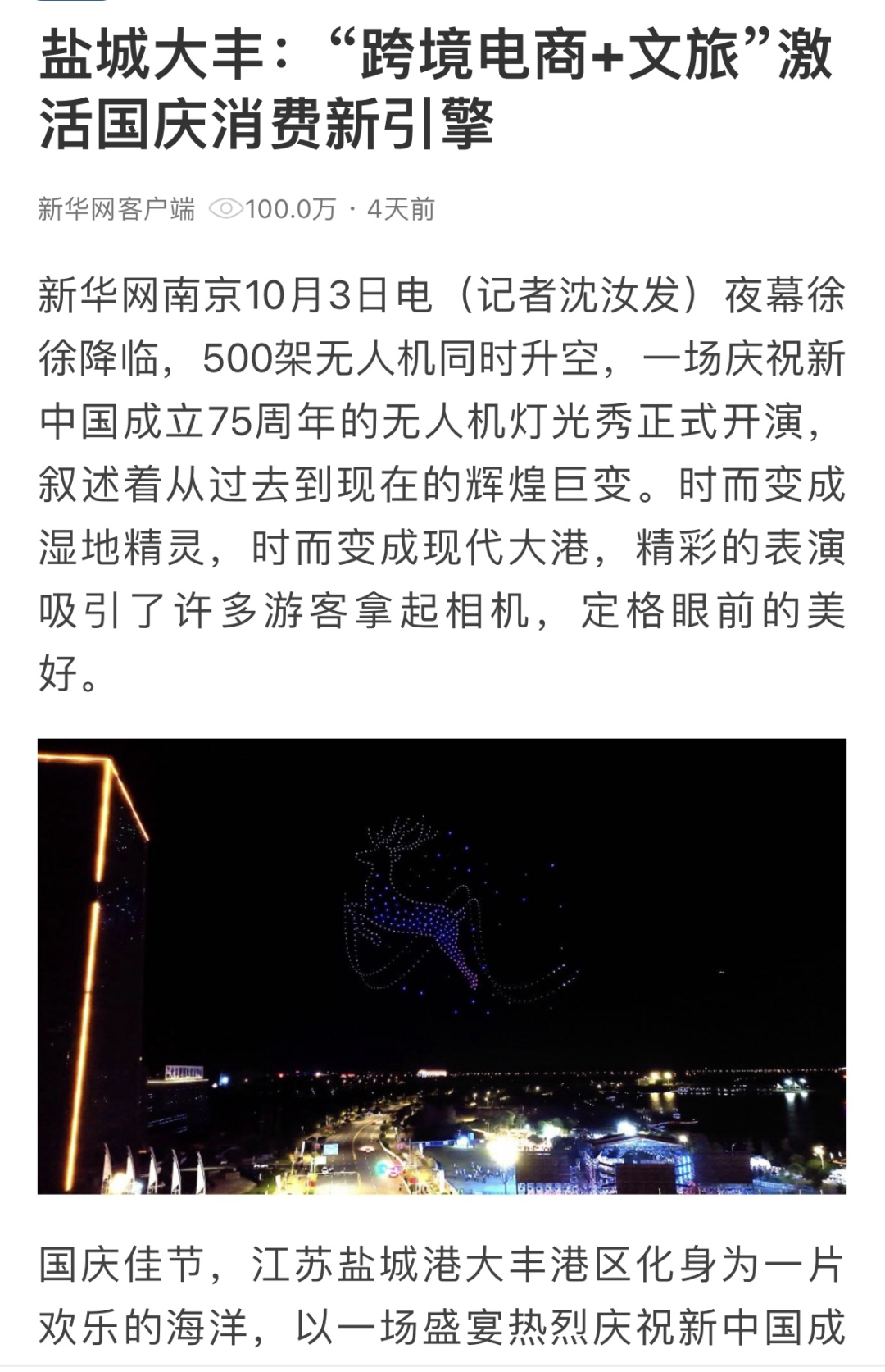 主流媒體也紛紛聚焦鹽城港,點贊其獨特的旅游模式和豐富的活動安排。央視新聞、新華網、鹽城新聞,以及央視網、搜狐網、中工網、光明網、齊魯晚報網、上觀新聞等權威及知名媒體紛紛報道并轉發了鹽城港在國慶期間的盛況,特別是新華社的報道更是達到了過百萬瀏覽量,凸顯了廣泛的社會影響力。這些報道一致稱贊“跨境電商+文旅”的深度融合模式為推動地方經濟轉型升級、挖掘消費潛力的新亮點。各大媒體通過圖文、視頻等多種形式,全方位展示了鹽城港的旅游風采,進一步提升了鹽城港的知名度和美譽度。