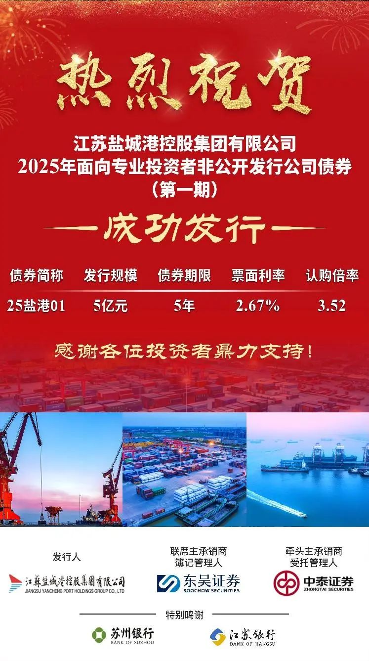 2月13日,集團成功發(fā)行2025年度第一期私募公司債。發(fā)行規(guī)模5億元,期限5年,票面利率2.67%,認購倍率3.52,創(chuàng)集團成立以來同類型、同期限債券產(chǎn)品發(fā)行利率新低。