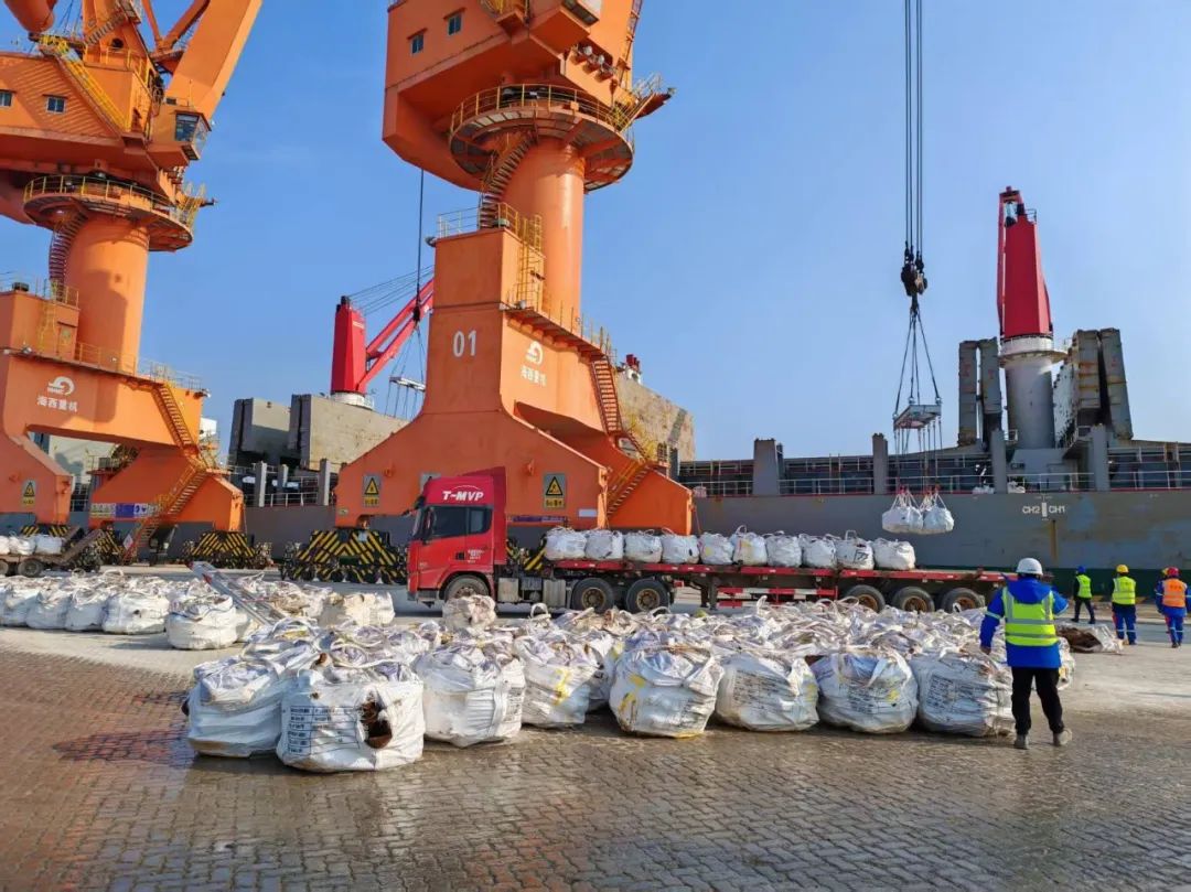 近日,“明熙海洋”號印度尼西亞籍船舶裝載10000噸鎳鐵,從印度尼西亞出發途經揚州港,最后停靠在濱海港1號碼頭作業區。忙碌的司機們正在操縱門機抓斗,抓取貨倉內噸袋鎳鐵排放在碼頭。這是濱海港區首次接卸的外貿進口噸袋鎳鐵業務。