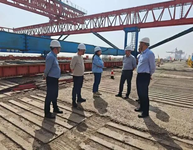 在大豐港一期碼頭引橋加固項目現場,雙方專業人員就引橋結構現狀及加固技術難點展開探討,山東港灣建設集團分享的橋梁加固成熟技術與經驗,為項目施工方案優化提供了新思路;在7、8#泊位現場,雙方圍繞泊位吞吐量、設備配置等要素,就提升作業效率、完善配套設施等問題交換意見,相互借鑒管理經驗;在氣膜倉項目現場,雙方聚焦氣膜結構穩定性、環保性能及運營管理模式等方面,全方位交流探索氣膜倉在港口倉儲領域的創新應用。