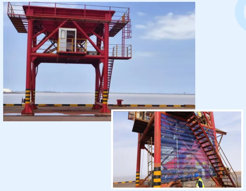 成果展示:該平臺(tái)結(jié)構(gòu)簡單實(shí)用,通過循環(huán)水系統(tǒng)對(duì)進(jìn)出港口的運(yùn)輸車輛進(jìn)行全方位沖洗,確保車輛干凈整潔,進(jìn)一步提升運(yùn)輸全程的環(huán)保水平,減少車輛帶泥上路和揚(yáng)塵污染。自制洗車平臺(tái)投入使用后,不僅節(jié)省了采購成本,而且減少了50%的道路打掃頻次,極大地降低了人力成本。