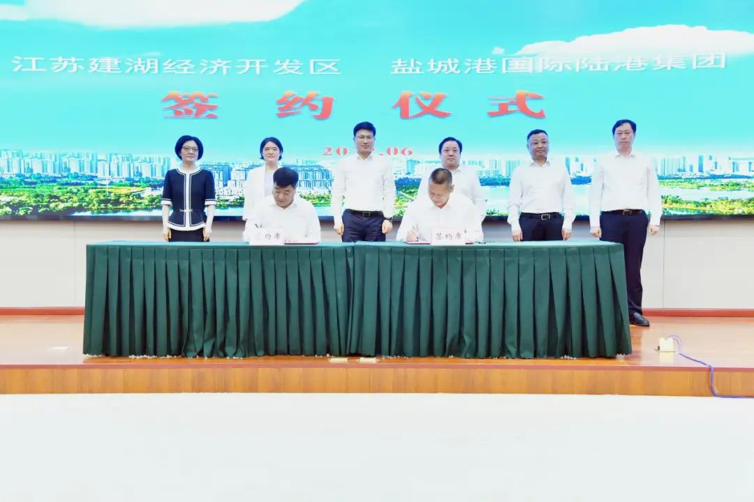 6月29日,江蘇建湖經濟開發區與江蘇鹽城港國際陸港集團合作簽約儀式成功舉行。建湖縣委書記祁從峰,集團黨委書記、董事長、總經理周正雄出席活動并分別致辭。建湖縣委副書記、縣長陳霞,建湖縣委常委、組織部部長、開發區黨工委書記孫紅,建湖縣委常委、縣委辦主任孫振宏,集團黨委委員、紀委書記周旭東,集團黨委委員、副總經理陳正華等參加。