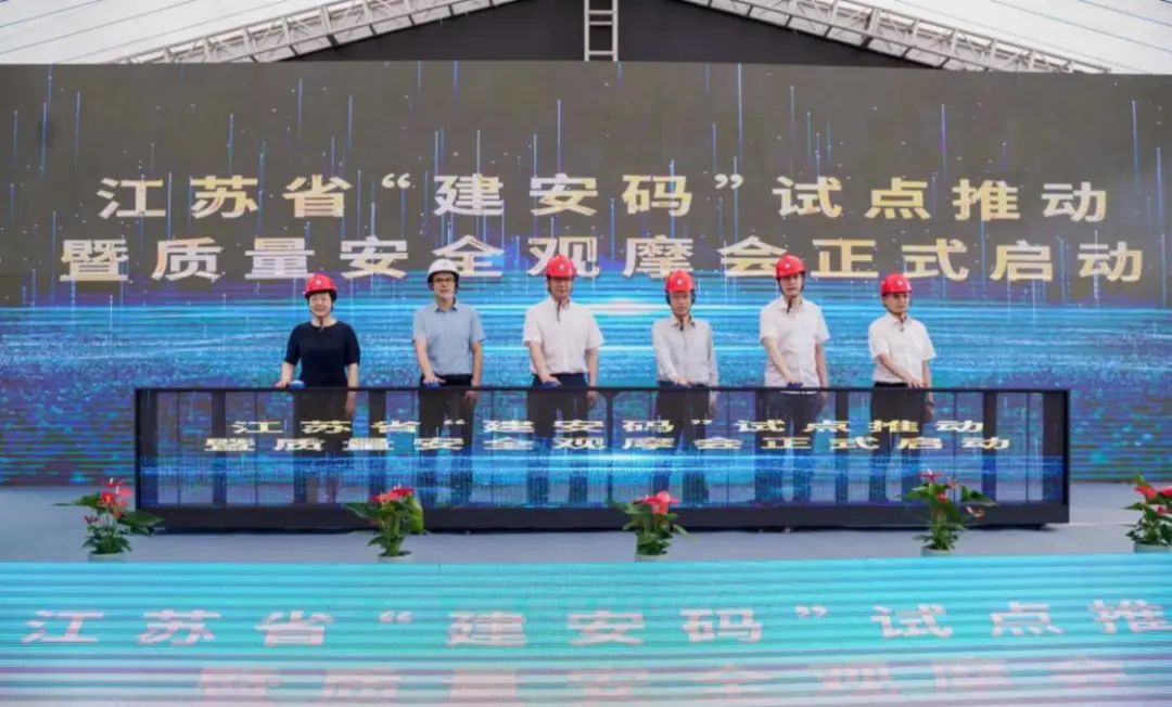6月12日上午,江蘇省“建安碼”試點推動暨質(zhì)量安全觀摩會在鹽城國際航運中心項目現(xiàn)場舉行。省住建廳二級巡視員唐世海、質(zhì)安處副處長夏亮,市住房和城鄉(xiāng)建設(shè)局總工程師嚴東鳴,集團黨委委員、副總經(jīng)理徐振山等出席活動。