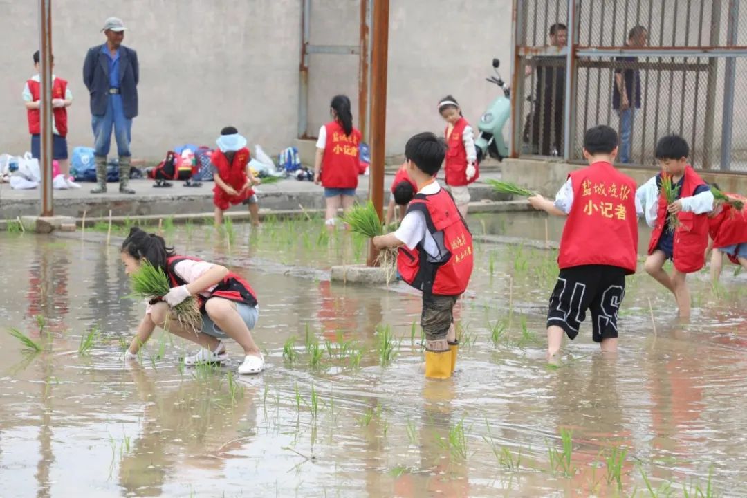 在華豐種業(yè)種植區(qū)內(nèi),稻子長在田里的身姿很好看,細(xì)細(xì)長長,看起來柔順又光滑,巨大的播種機(jī)將一棵棵稻苗井井有條的插在稻田里……講解員向同學(xué)們講解了傳統(tǒng)人工播種與現(xiàn)代大型機(jī)器播種的區(qū)別,也講解了雜交水稻的選種、育種等流程,隨后同學(xué)們來到稻田插下一棵棵稻苗,用實(shí)際行動(dòng)體會(huì)到播種插秧的不易。