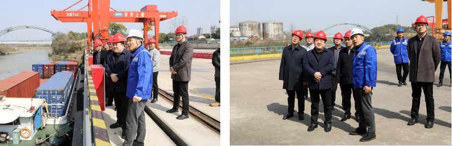 周正雄一行實地察看了浙江安吉港作業(yè)現(xiàn)場,詳細了解港區(qū)泊位規(guī)模、運輸模式及生產(chǎn)運營相關(guān)情況。