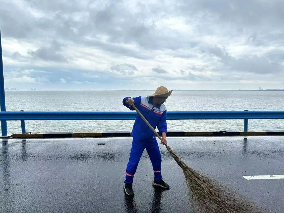 在港區的道路上,隊員們頂著烈日,清理著道路護欄和雜物垃圾。他們用“嚴真細實快”的工作作風,時刻維護著港容港貌的“高顏值”。